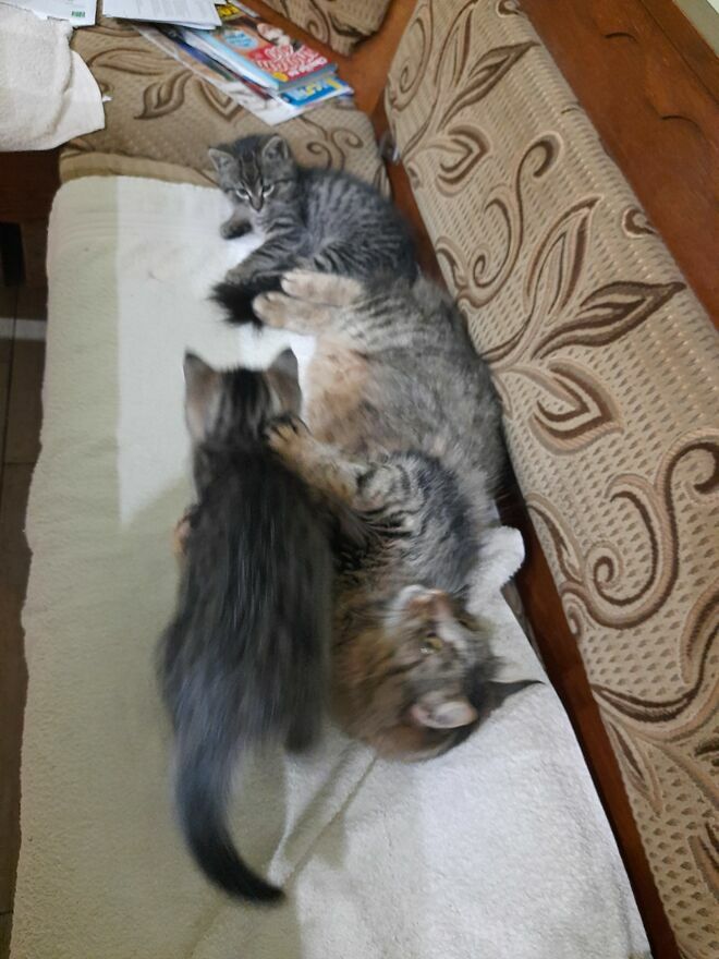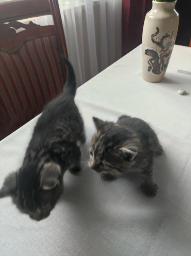 Mam do oddania dwa.małe kotki-rodzeństwoSą bardzo ze sobą zżyte, Świetnie się bawią i figlują.Są nauczone korzystać z kuwety.
